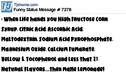 - # 80918 When life hands you high fructose corn syrup, citric acid, ascorbic acid, maltodextrin, sodium acid pyrophosphate, magnesium oxide, calcium fumarate, yellow 5, tocopherol, and less than 2% natural flavors...make lemonade.