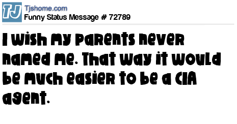 X is I wish my parents never named me. That way it would be much easier to be a CIA agent.