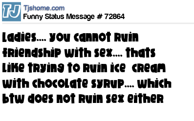 - # 72606 Sex can not ruin a friendship! Thats like trying to ruin ice cream with chocolate sprinkles.