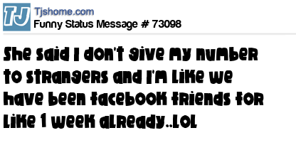 X she said I don't give my number to strangers and I'm like we have been facebook friends for like 1 week already..lol