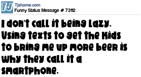 X  I don't call it being lazy. Using texts to get the kids to bring me up more beer is why they call it a smartphone.