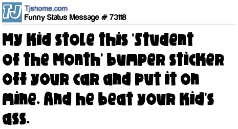 X My kid stole this 'Student of the Month' bumper sticker off your car and put it on mine. And he beat your kid's ass.