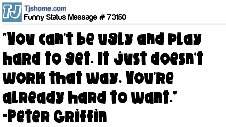 - # 76941 You can't be ugly and play hard to get. It just doesn't work that way. You're already hard to want..." -Peter Griffin