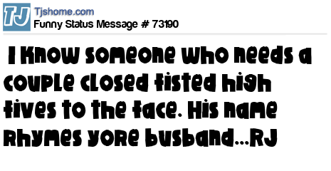 X is I know someone who needs a couple closed fisted high fives to the face. His name rhymes yore busband...RJ