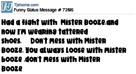 X had a fight with Mister Booze,and now I'm wearing tattered shoes,♪♫ Don't mess with Mister Booze, You always loose with mister booze ,don't mess with Mister Booze♪♫