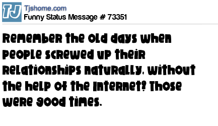 X says Remember the old days when people screwed up their relationships naturally, without the help of the Internet? Those were good times.