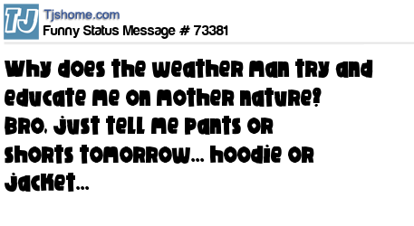 - # 70421 Why do meteorologists try and educate me on the workings of mother nature? Dude, just tell me pants or shorts tomorrow...