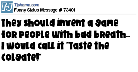 X is They should invent a game for people with bad breath.. I would call it "Taste the Colgate!"