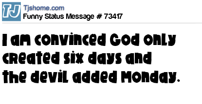 - # 108446 I'm pretty sure God created only 6 days, Monday was definitely made by Satan.