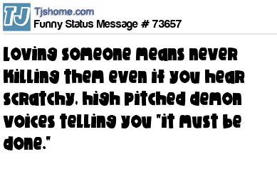X Loving someone means never killing them even if you hear scratchy, high pitched demon voices telling you "it must be done."