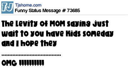X is The levity of MOM saying just wait to you have kids someday and I hope they ...................................... OMG !!!!!!!!!!