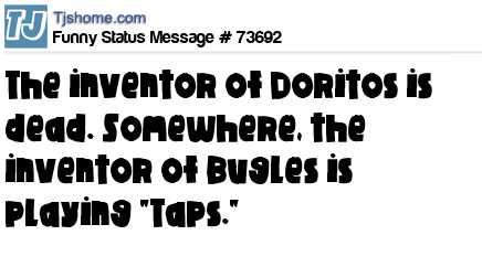 X is The inventor of Doritos is dead. Somewhere, the inventor of Bugles is playing "Taps."