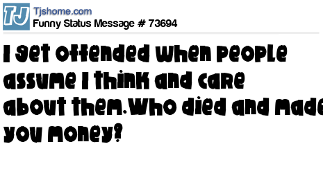 X says I get offended when people assume I think and care about them.Who died and made you money?