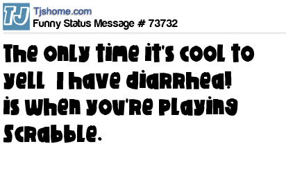 - # 42672 The only appropriate time to yell out "I HAVE DIARRHEA!", is when you're playing scrabble. Because it's worth a whole load of points.