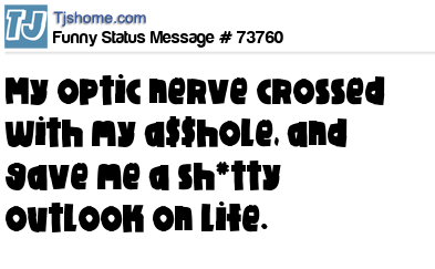 X My optic nerve crossed with my a$$hole, and gave me a sh*tty outlook on life.