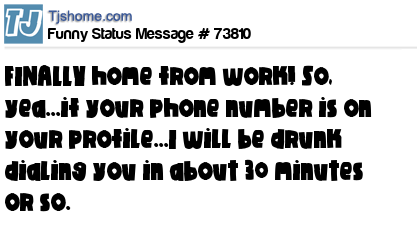 X FINALLY home from work! So, yea...if your phone number is on your profile...I will be drunk dialing you in about 30 minutes or so.