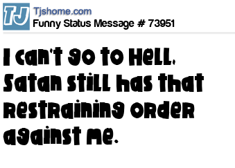 X is I can't go to Hell, Satan still has that restraining order against me.