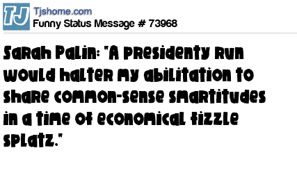X  Sarah Palin: "A presidenty run would halter my abilitation to share common-sense smartitudes in a time of economical fizzle splatz."