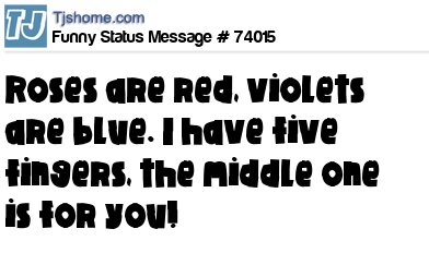 - # 23485 Roses are red. Violets are blue. She has 5 fingers and the middle one's for you.