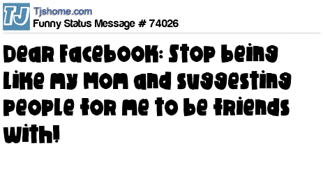 - # 46572 Dear Facebook: Stop being like my mom and suggesting people for me to be friends with.