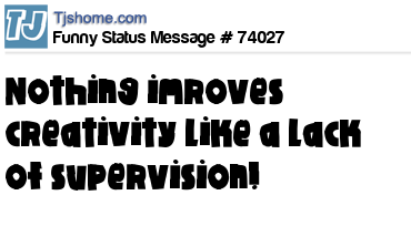 - # 24782 Nothing improves creativity more than a lack of supervision.
