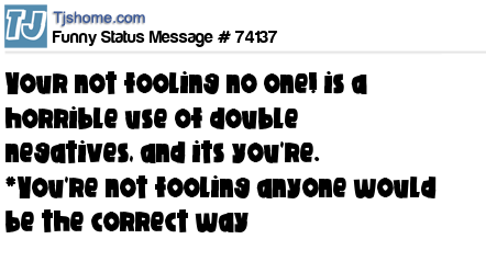 X is Your not fooling no one! is a horrible use of double negatives, and its you're. *You're not fooling anyone would be the correct way