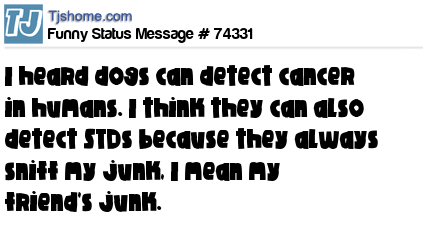 X I heard dogs can detect cancer in humans. I think they can also detect STDs because they always sniff my junk, I mean my friend's junk.
