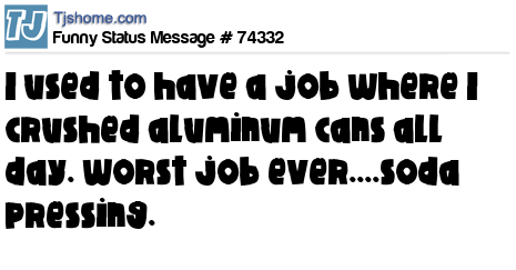 - # 103359 I used to work in a factory crushing cans. I hated it! It was soda pressing.
