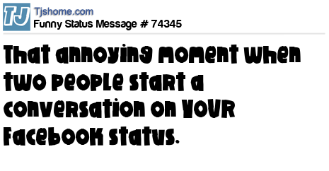 - # 37410 Don't you hate it when people start a whole conversation off you're status? C'mon guys, get a WALL!"