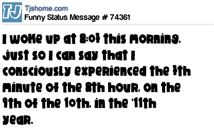 X is i woke up at 8:07 this morning, just so I can say that I consciously experienced the 7th minute of the 8th hour, on the 9th of the 10th, in the '11th year.