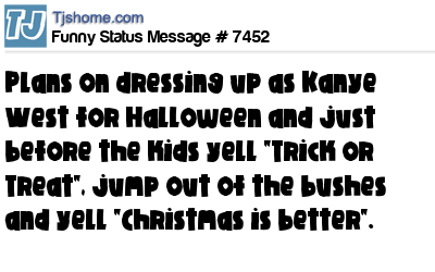X plans on dressing up as Kanye West for Halloween and just before the kids yell "Trick or Treat", jump out of the bushes and yell "Christmas is better".