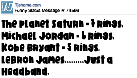- # 90353 Planet Saturn = 7 rings Michael Jordan = 6 rings Kobe Bryant = 5 rings LeBron James = 1 really nice headband