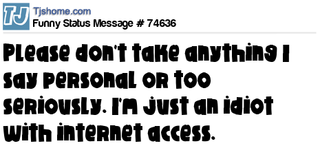 X says Please don't take anything I say personal or too seriously. I'm just an idiot with internet access.