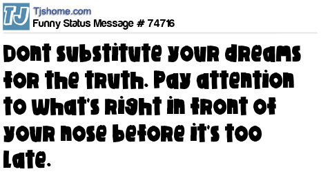 X is dont substitute your dreams for the truth. Pay attention to what's right in front of your nose before it's too late.