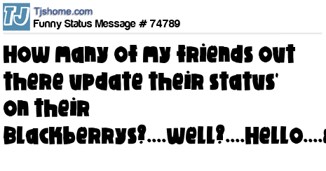 X How many of my friends out there update their status' on their Blackberrys?....well?....Hello....<crickets>