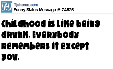 - # 74876 Childhood is like being drunk. Everybody remembers it except you..