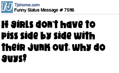 X says if girls don't have to piss side by side with their junk out, why do guys?