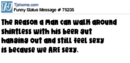 X The reason a man can walk around shirtless with his beer gut hanging out and still feel sexy is because we ARE sexy.