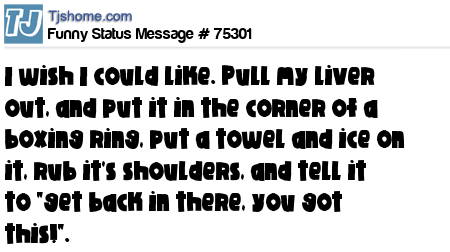 X is I wish I could like. Pull my liver out, and put it in the corner of a boxing ring, put a towel and ice on it, rub it's shoulders, and tell it to "get back in there, you got this!".