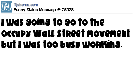 - # 79679 I'm jealous of the occupy movement, I wish I could join in. But I have to occupy my job so my kids can occupy my house.