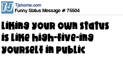 - # 157845 and, liking - you liked your own statuse by yourself- your own status is like high fiving yourself in public.