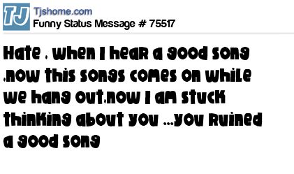 X says Hate , when I hear a good song ,now this songs comes on while we hang out,now I am stuck thinking about you ...you ruined a good song