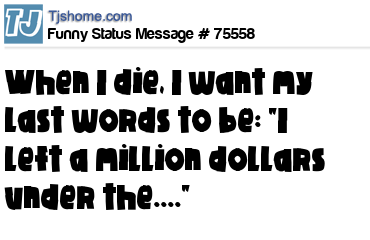 - # 206546 When I'm on my death bed I want my last words to be .... " I left one million dollars in the"................