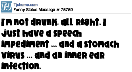 X I'm not drunk, all right. I just have a speech impediment ... and a stomach virus ... and an inner ear infection.