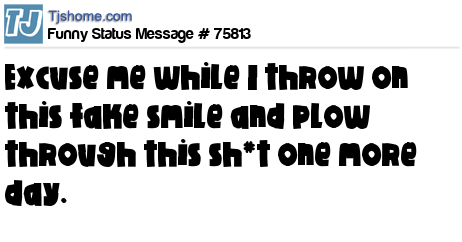 X says Excuse me while I throw on this fake smile and plow through this sh*t one more day.