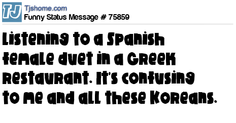 X Listening to a Spanish female duet in a Greek restaurant. It's confusing to me and all these Koreans.