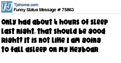 X is Only had about 4 hours of sleep last night, that should be good right? It is not like I am going to fall asleep on my keyboar