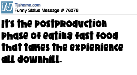 X  It's the postproduction phase of eating fast food that takes the expierience all downhill.