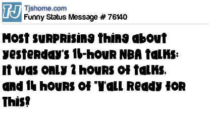 X is Most surprising thing about yesterday's 16-hour NBA talks: It was only 2 hours of talks, and 14 hours of "Y'all Ready for This?