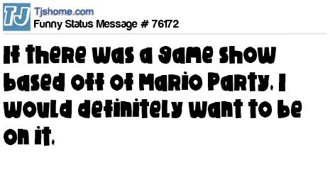X If there was a game show based off of Mario Party, I would definitely want to be on it,